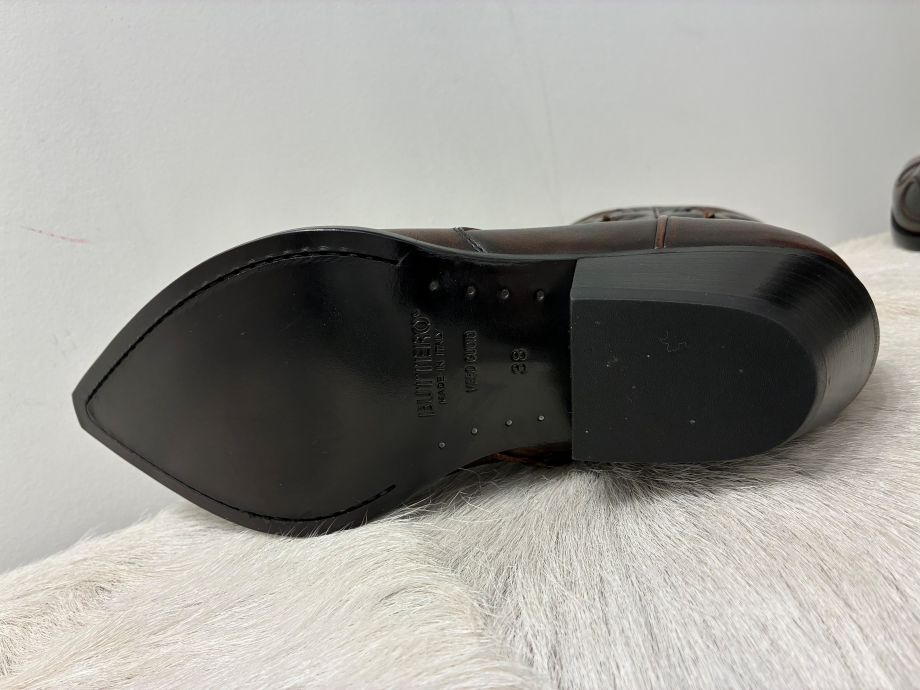 Made in Italy Western-inspired Flee boots in copper brown calf leather.