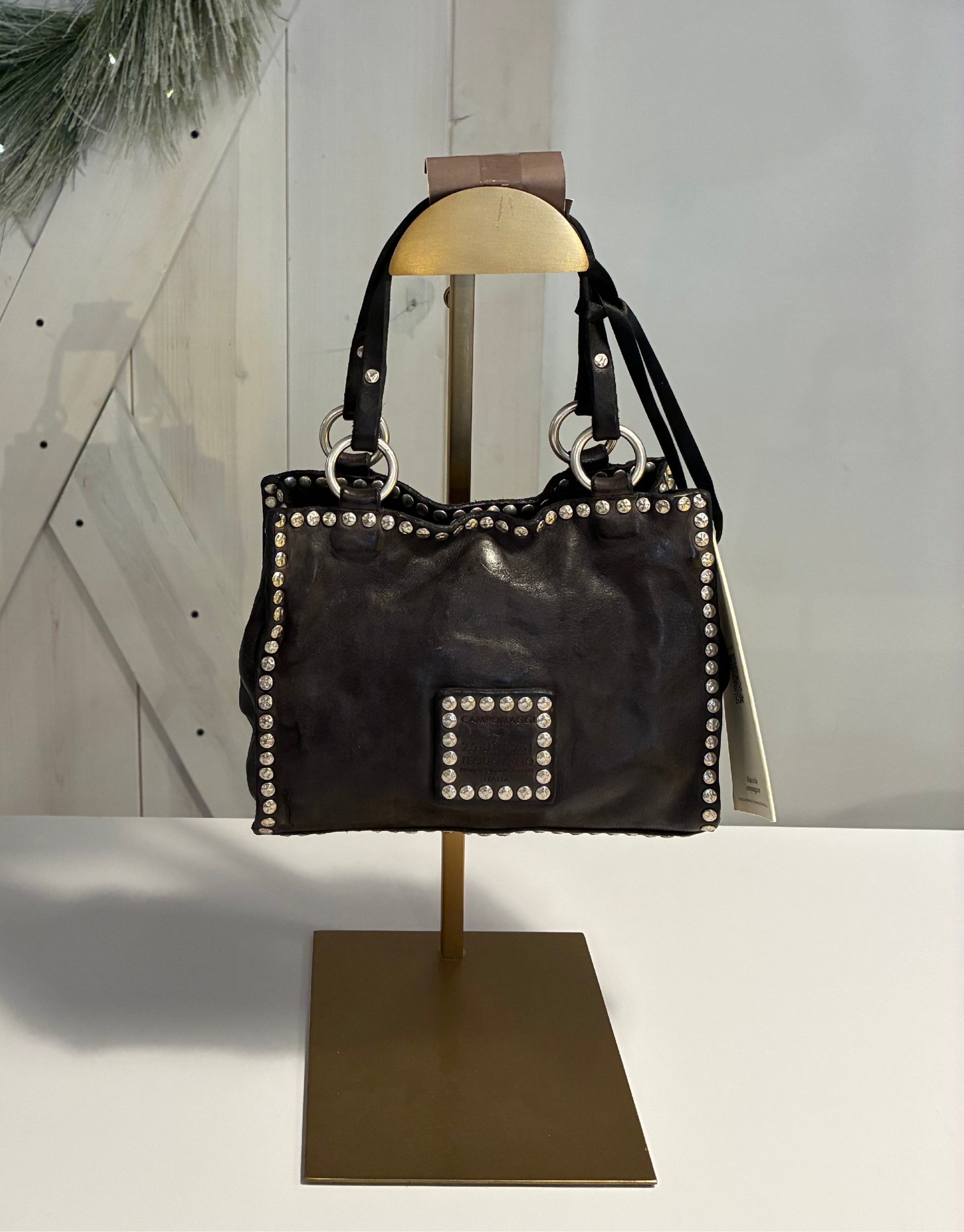 Shopping Bag mini "Dafne" in garment-dyed cowhide leather with Bella di Notte studs.