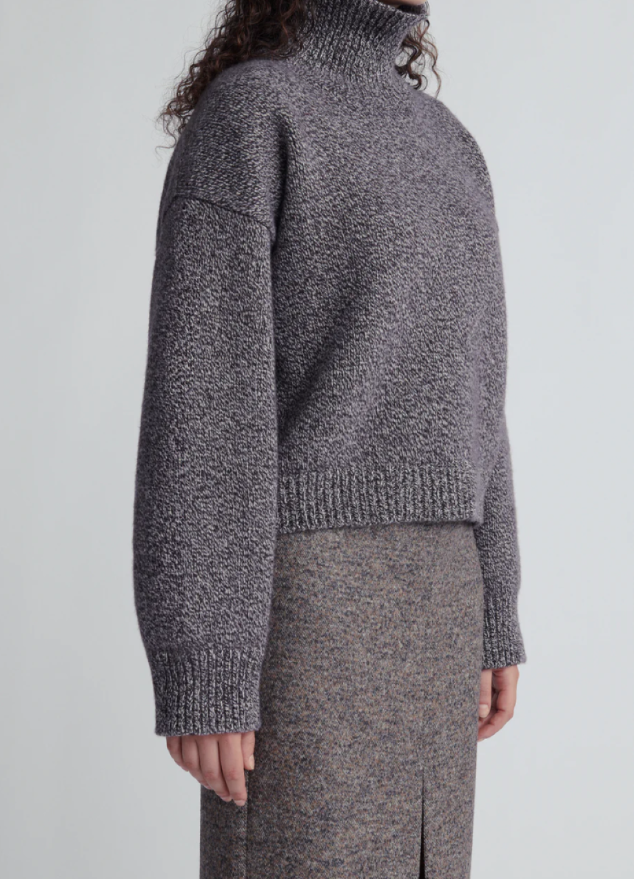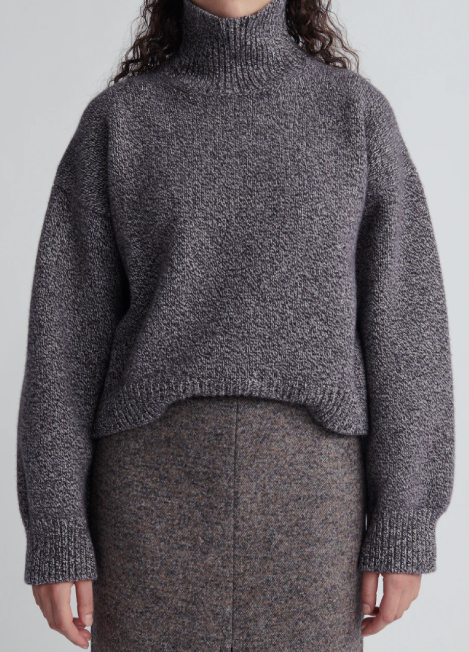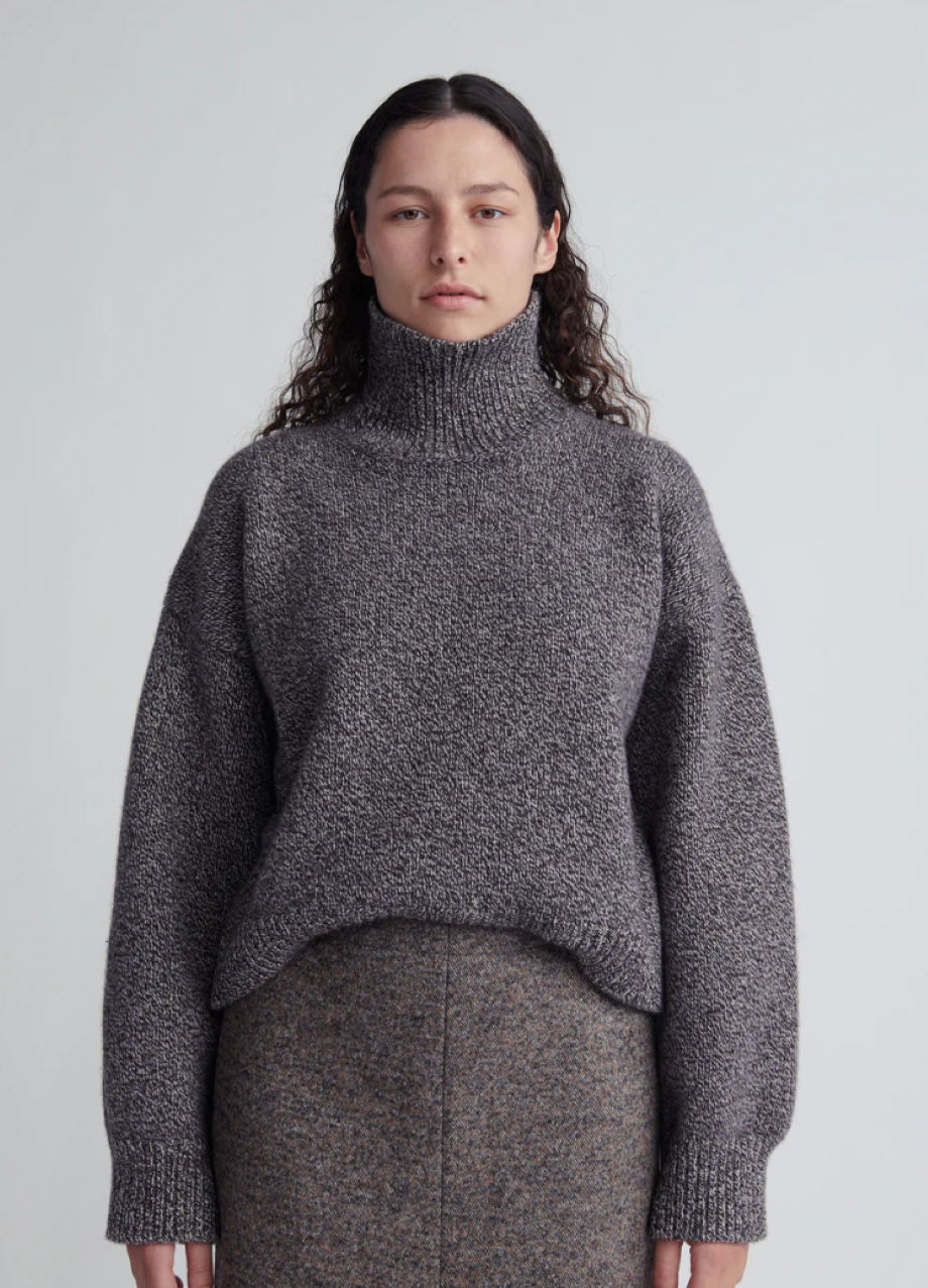 Knit in 100% Geelong Lambswool that is Responsible Wool Standard certified, proportions are slouchy through the body and sleeve with chunky collar and cuffs.