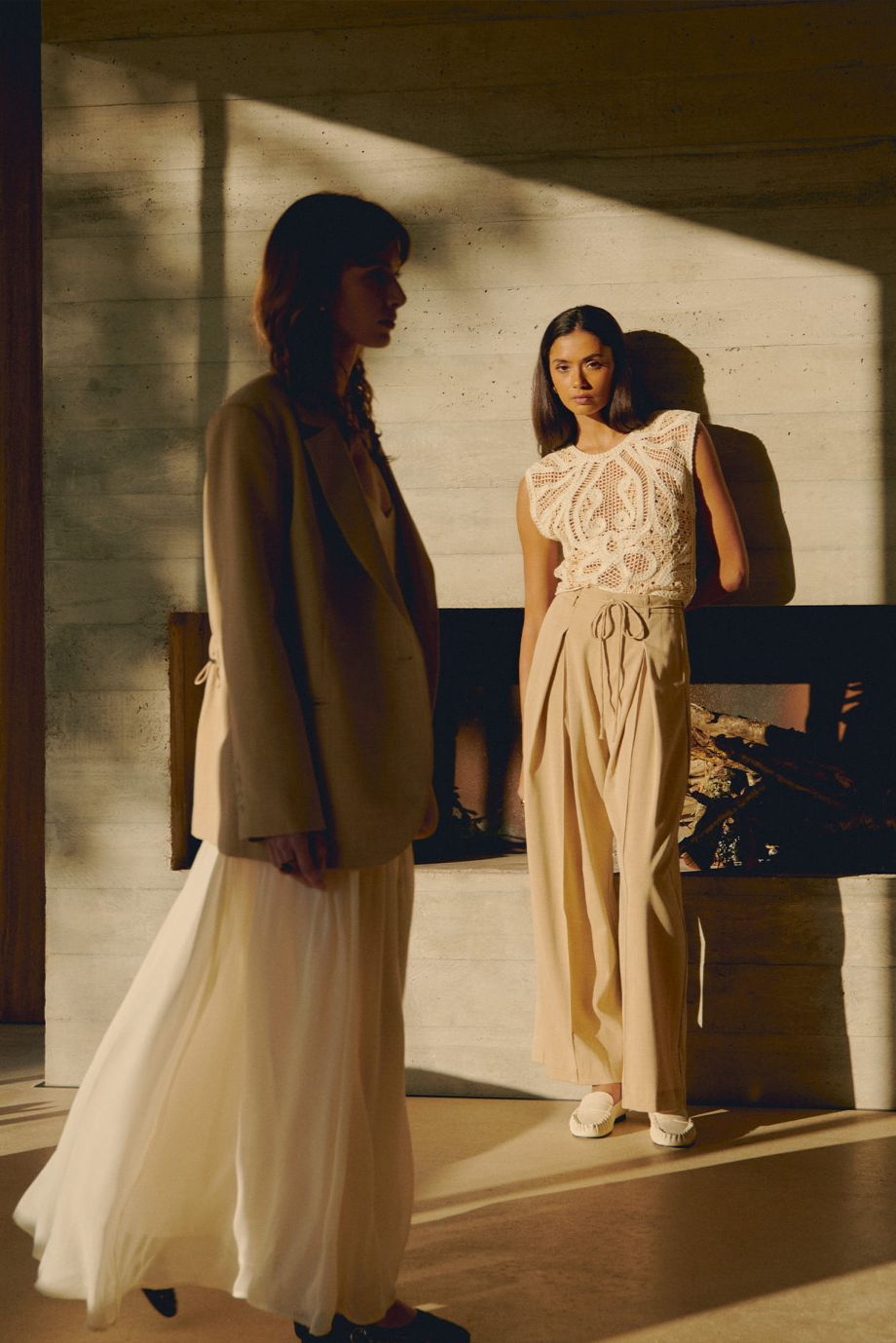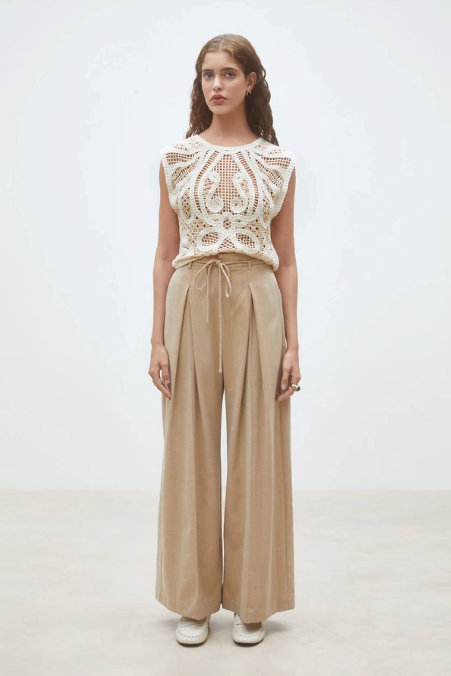 Suncoo Polonia Two-Tone Crochet Top - Cream